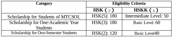 Applicants should log onto the Scholarship website, fill out the ‘Confucius Institute Scholarship Application Form’, and attach the electronic files of the following materials: (1) Photocopy of passport photo page. (2) Photocopies of HSK、HSKK score reports. (3) Notarized highest education diploma attained (scheduled graduation proof or official proof of student status). (4) Reference letter and letter of commitment. The MTCSOL Scholarship applicants are required to submit two reference letters from professors or associate professors (in Chinese or English) and a written commitment stating that the applicant will be engaged in Chinese language teaching for at least 5 years after graduation (written in Chinese and signed). (5) Winners of the finals of the ‘Chinese Bridge’ Chinese Proficiency Competitions for Foreign College Students and for Foreign High School Students in China shall submit the certificate of scholarship. Winners of preliminary rounds of the ‘Chinese Bridge’ Chinese Proficiency Competitions in their countries shall submit award proof and a reference letter from the Chinese Embassy (or Consulate) in the competition area. (6) Other materials required by host institutes.