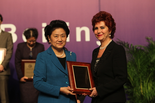 The State Councilor and the Chairman of the Council of Hanban Headquarters Liu Yandong presented the prize to Prof. Gulay On January 4th, 2012, Prof. Gulay visited CIBU for the first time and presented the prize to CIBU. The Turkish Director of CIBU Prof. Esenbel showed Prof. Gulay around the institute and the Ningxia Rock Art Exhibition in the Institute. Prof. Gulay talked to all the staff and thanked them for their diligent work.