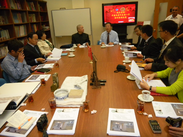 September 24, 2013, a delegation of 11 Chinese journalists and scholars, head by Mr. Sun Weilin, editor-in-chief of Democracy and Science, and accompanied by Mr. Hua You, Counselor for Cultural Affairs and Spokesmen of the Chinese Embassy in Turkey, visited Confucius Institute at Bogazici University. The delegation firstly had a meeting with Prof. Ali Teckcan, Provost of Bogazici University and Turkish Chairman of CI Council, and Prof. Arzu Ozturkmen, the Turkish CI Director. Then they visited the CI offices and had a talk with the CI staffs. Prof. Yu Jiang, Miss Nurdan Cagatay and some Chinese students help host the guests.
