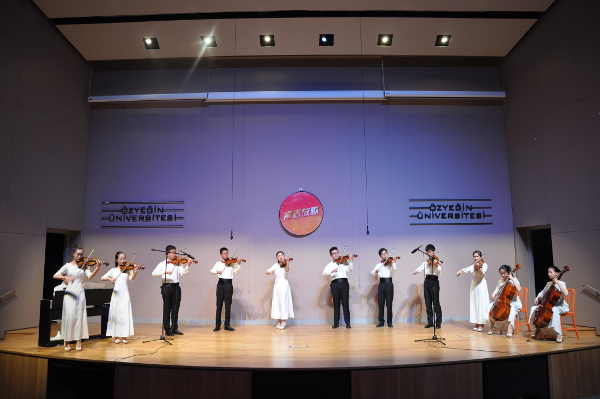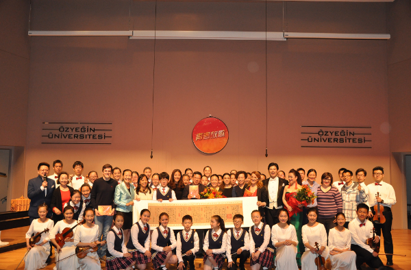 On April 20th and 21st, 2015, at the invitation of the Confucius Institute at Bogazici University, the Shanghai Students’ Art Troupe consisting of Shanghai Municipal Commission of Education, Shanghai Conservatory of Music, Gezhi High School of Shanghai, and China Welfare Institute Children’s Palace visited Istanbul and staged a concert at Ozyegin University. Jin Wei, a well-known host from Shanghai Oriental TV Station, hosted this concert and Ms. Liu Lian, a famous soprano singer from Shanghai Conservatory of Music, gave splendid performances. The concert started with the chorus by the Choir of China Welfare Institute Children’s Palace, who performed several songs like I Sing the Voice of the World, Tune Guessing, and Jasmine Flower. The String Orchestra of Gezhi High School of Shanghai performed some pieces of classic music. Then, one member of the orchestra, Zhu Jingting, known as “The Young Genius”, performed Chopin’s Fantaisie Impromptu. Next, the concert reached its exciting climax when famous singers Liu Lian and Zhang Fantao sang together. Zhang Fantao sang several songs like A Glass of Mellow Wine, and Liu Lian’s performed some other classic songs like Nessun Dorma. Finally, they performed together the theme song of the World Expo 2010 Shanghai Building for Tomorrow. During their stay in Istanbul, members of the Art Troupe also visited the Turkish Music Conservatory of Istanbul Technical University (ITU) and the Confucius Institute at Bogazici University.